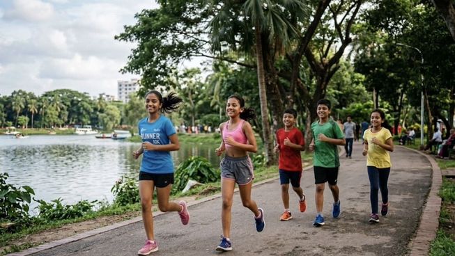 Jogging while chatting in Rabindra Sarabar